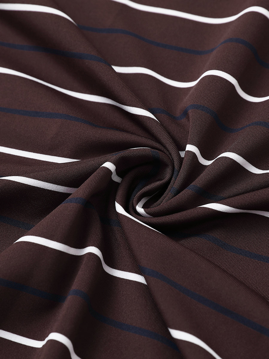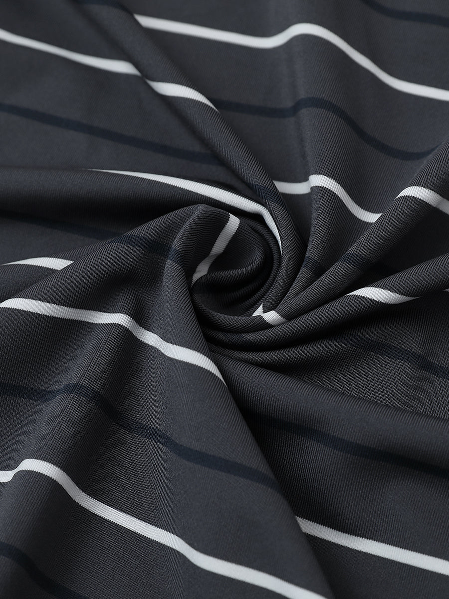 Our men's golf shirt features yarn-dyed stripes and is made from high-end polyester-spandex material, providing softness and breathability. It effectively wicks moisture to keep you cool and dry. With 4-way stretch fabric, this polo ensures full range of motion for any golfer. Ideal for the course or casual wear.