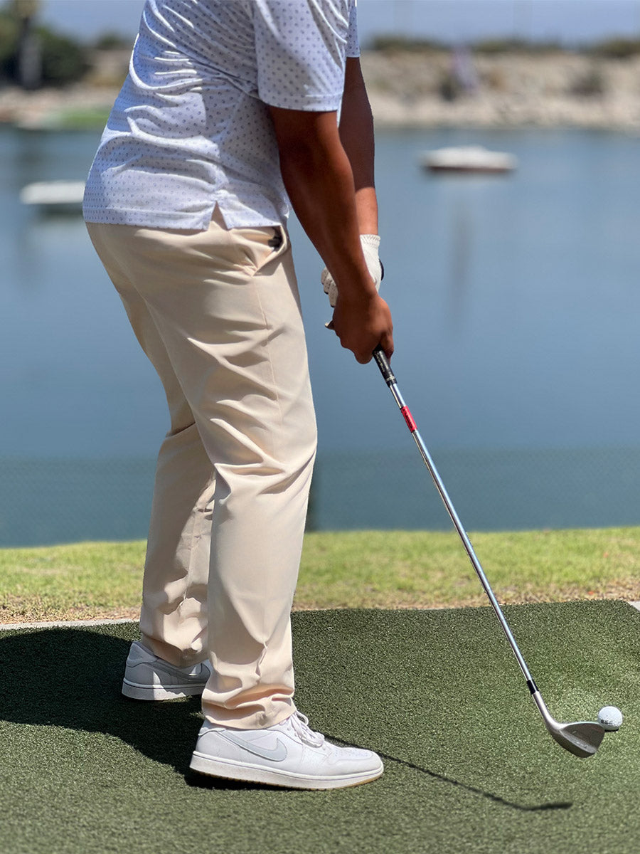 Introducing our Water Resistant Everyday Pants for men. Crafted from premium polyester chino fabric, these pants offer a luxurious feel with features such as moisture-wicking, UPF30+, and water-resistant properties. Designed with a button front and zip-fly closure, they provide both style and comfort for everyday wear.