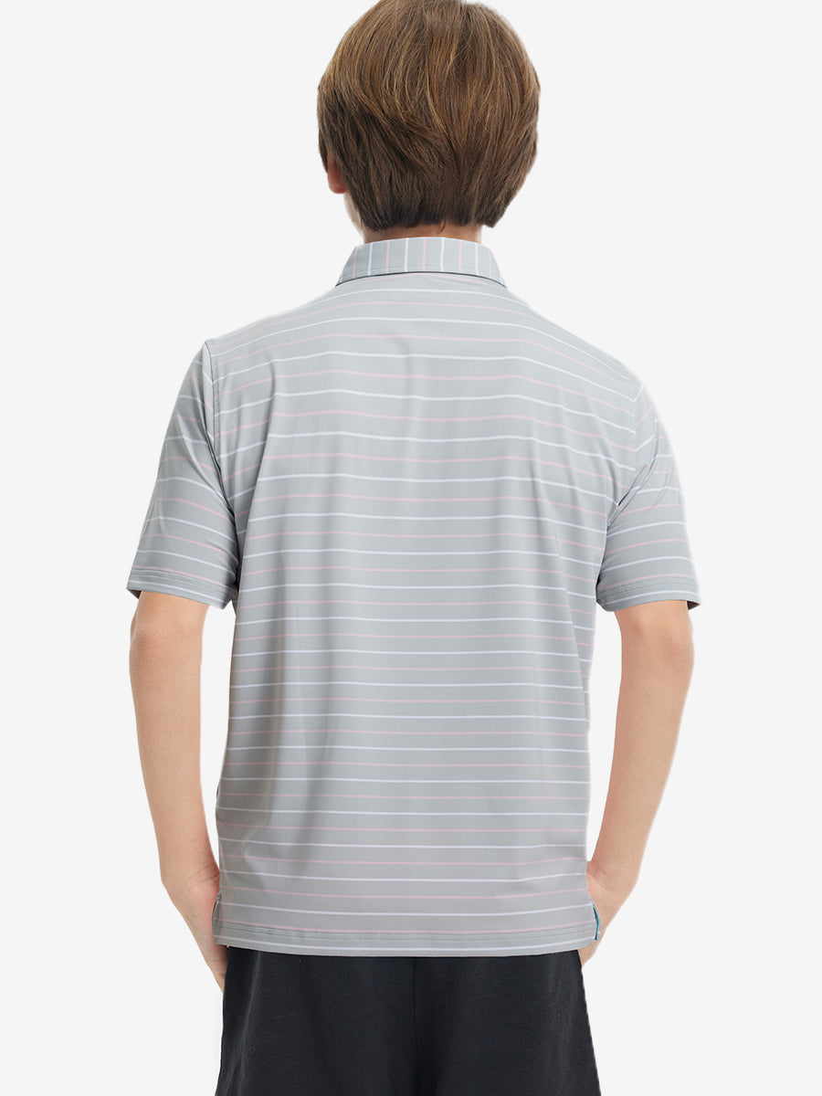 Introducing our Kids Stylish Stripe Polo Shirts! Made from high-end polyester spandex, these soft, skin-friendly, and lightweight shirts keep your little ones cool and dry in hot weather. With 4-way stretch fabric and premium dyeing, this vibrant youth golf shirt remains durable wash after wash, perfect for active kids who love to play.