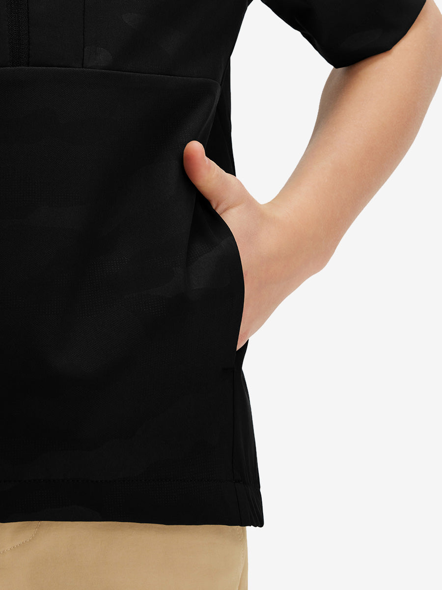 Keep your boy dry and comfy with our Water-Resistant Short Sleeve Q-Zip Hoodie! Made from lightweight, breathable, quick-dry fabric that’s gentle on skin, it offers all-day comfort. The chin guard protects during zipping, while two secure front pockets hold phones and essentials—perfect for active outdoor fun!