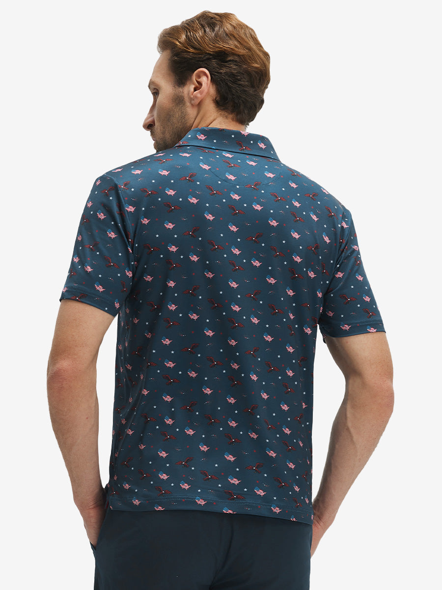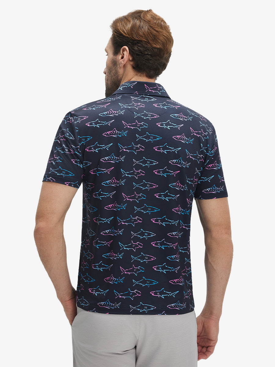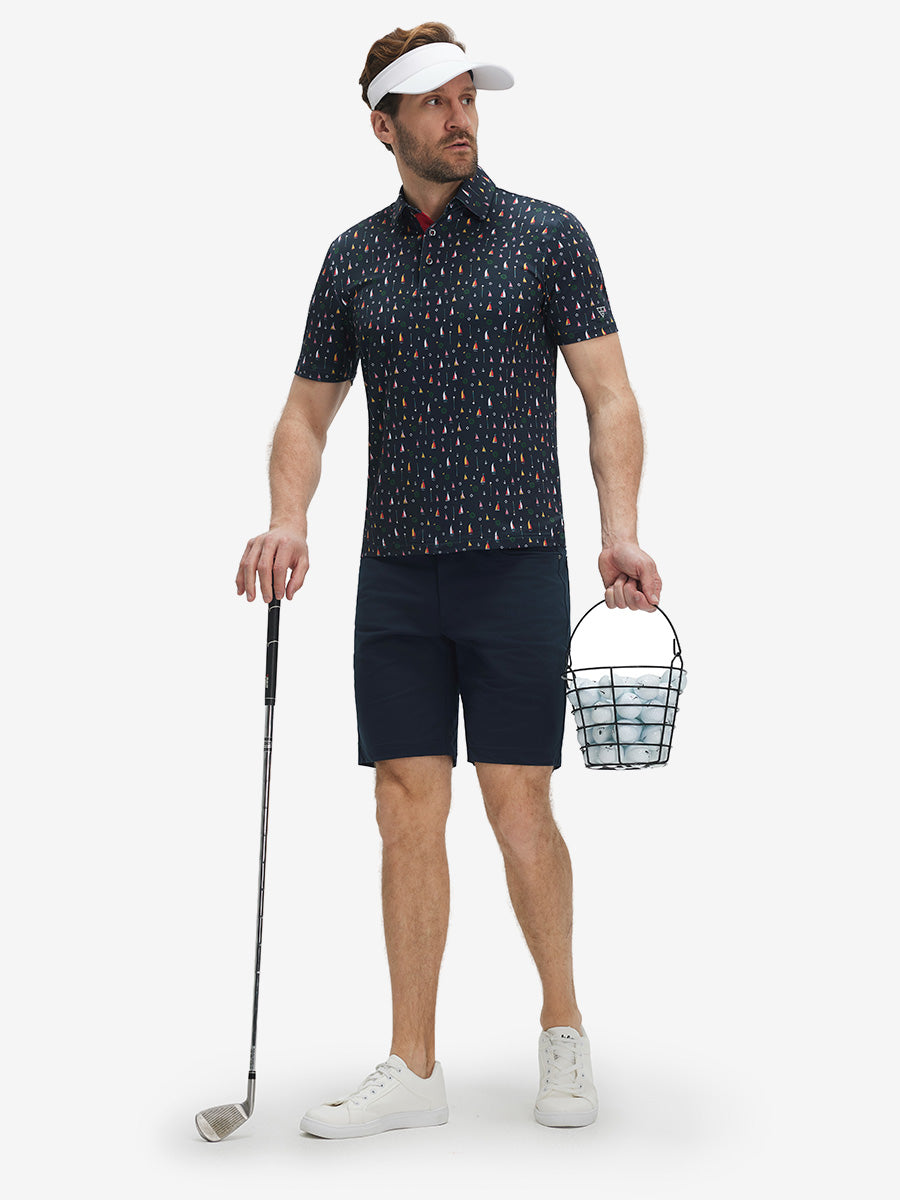 4 Way Stretch Print Collared Polo Shirts