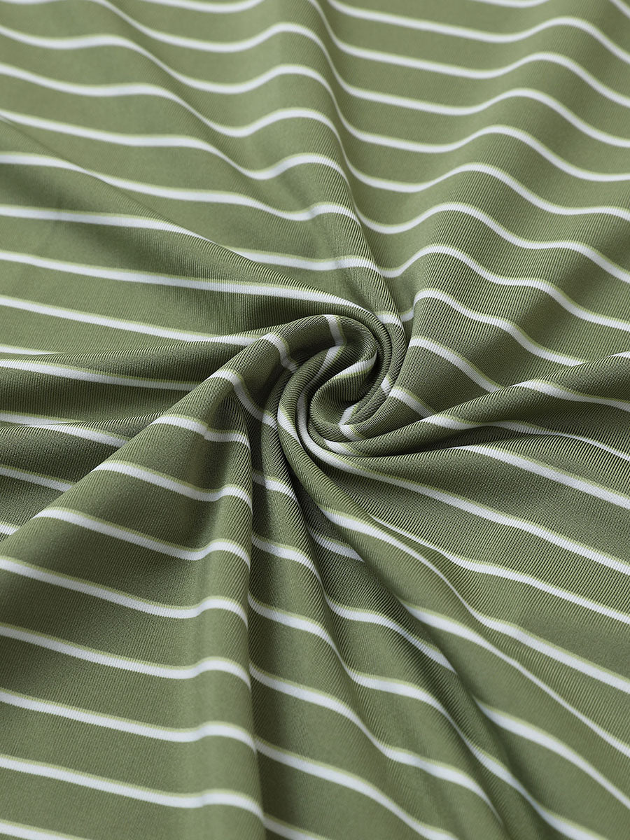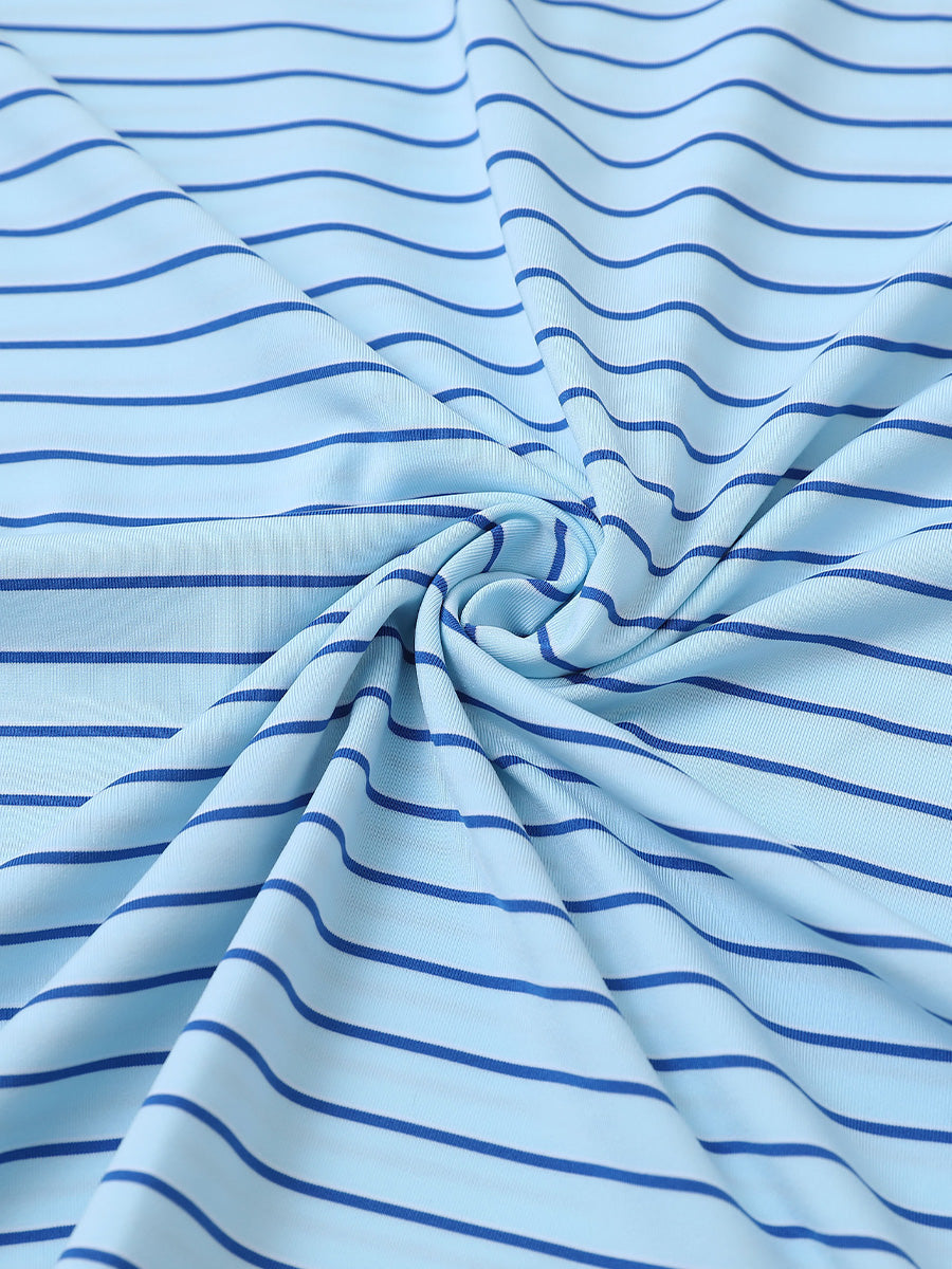 Experience lightweight comfort with moisture-wicking, quick-dry properties, and four-way stretch for enhanced movement. Our men's golf shirt showcases horizontal stripes in two-tone knit, accented by a striking contrast design at the collar and slits, achieving a stylish, unique, and elegant appearance.